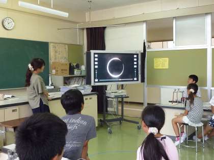 大画面テレビで金環日食の様子も見ることができ、宇宙の不思議に感動していました。