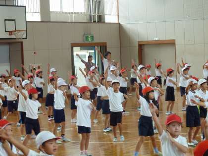 運動会練習 雨のため体育館で