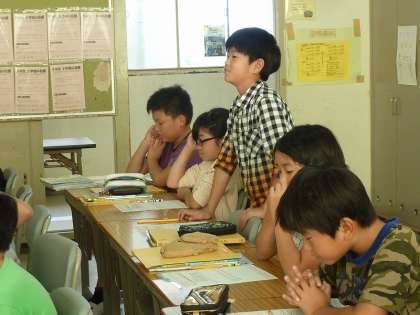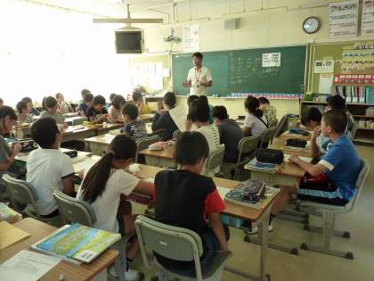 先生が小出しにするヒントに、子どもたちは正解を一生懸命考え意見を出し合います。
