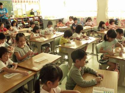 ふえてから、もう一回ふえて全部でいくつの勉強を教育実習の先生と行いました。