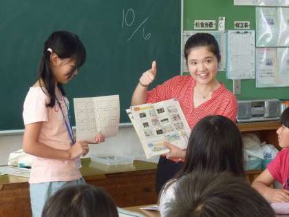 6年生は外国語の授業で、ALTの先生と道案内の授業です。