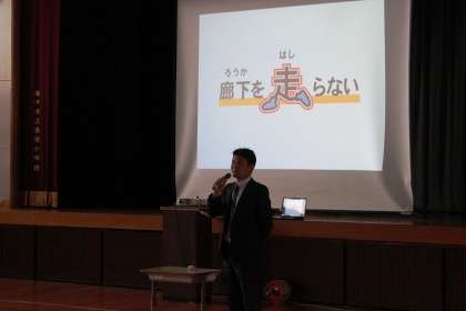 今日の朝礼では、「廊下を走らない」ことについて校長先生からお話がありました。