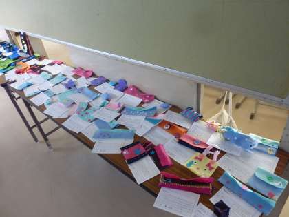 5年生は、初めて作った縫い物の小物入れ。