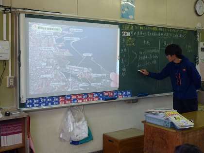タブレットのカメラ機能を使って、事前に子どもたちに見せたい写真を取り込んでおけば、画面で大きく映し出すことができます。