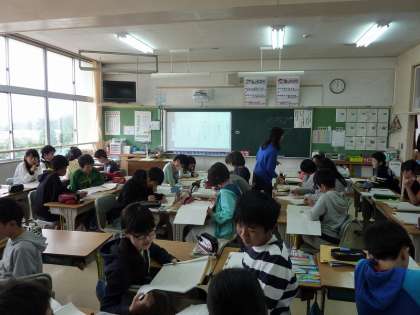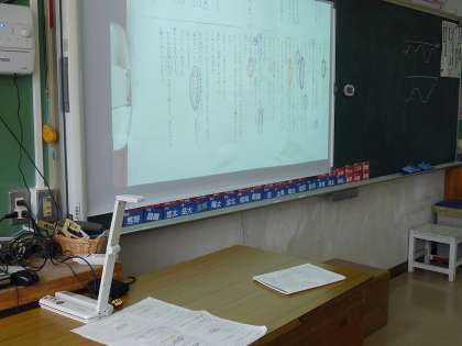 プリントに書き込んだ箇所を、書画カメラで写すことで、大きくスクリーンに映し出すことができます。