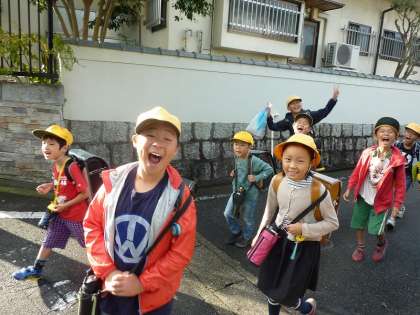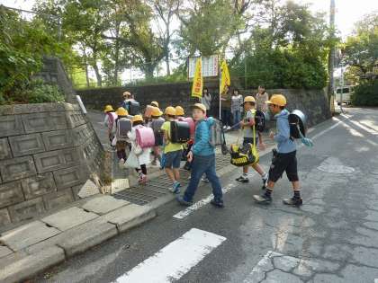 いつも大きな声であいさつしてくれる、通学班が今日も元気いっぱいの