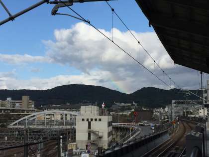 京都駅から名古屋方面を見ると、虹がかかっていました。