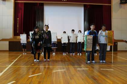保健委員のみなさんが、「歯と口の健康づくり週間」のPRを、寸劇を交えて行ってくれました。