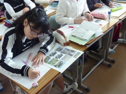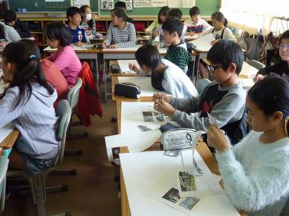 写真を切ったり、パンフレットをコラージュしたりと各自が工夫を凝らしています。