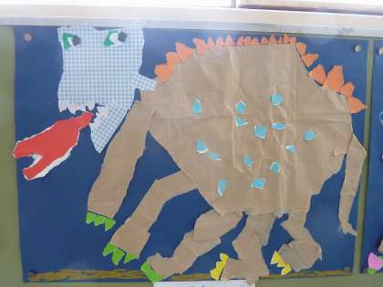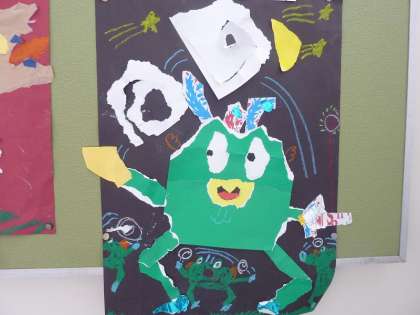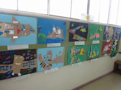 紙を破ったりちぎったりしながら貼り付けて作った動物たち。
