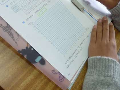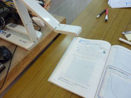 教科書を書画カメラで写し、ホワイトボードになっている画面に直接マーカーペンで書き込んで点を取ります。