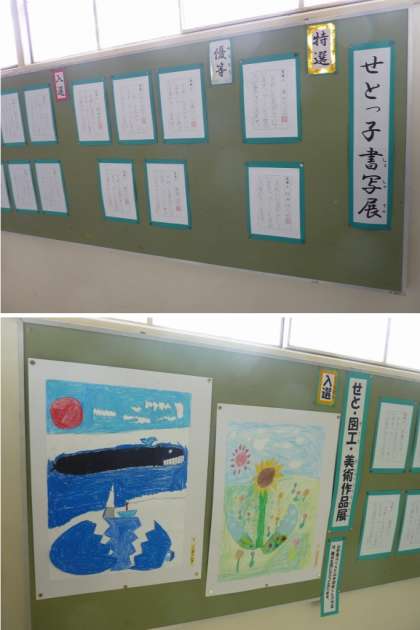 まるっとせとっ子フェスタ出品作品が、校内に展示されています。