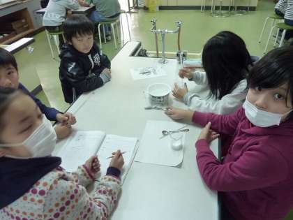 計量スプーンで何杯かを理科ノートに記録していきます。