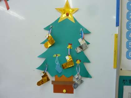 明日は、他校との交流会があるので、教室にクリスマス飾りがあるととても盛り上がります。