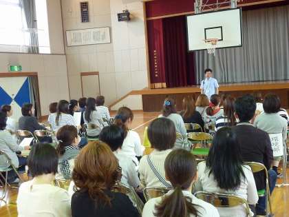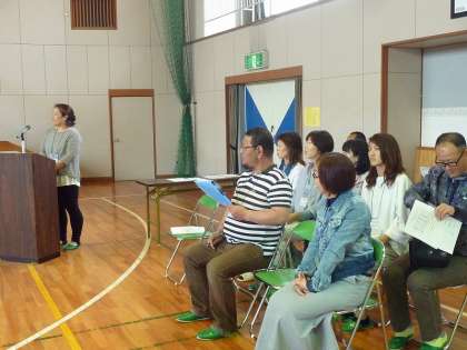体育館でPTAの合同委員会が行われ、各部の活動内容や年間の予定を確認しました。