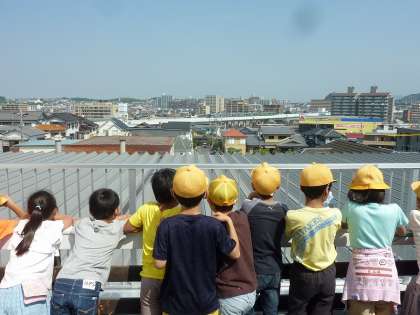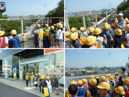 自動車販売店の方には、快く2階のテラスを開放していただき3年生はとても見晴らしのよい場所で、地理の勉強ができました。