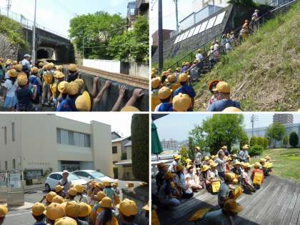 トンネルを近くで見たり、急な階段を上ったり、ハローワークの前を通ったり、いろいろな経験で、長根校区についての理解を深めました。