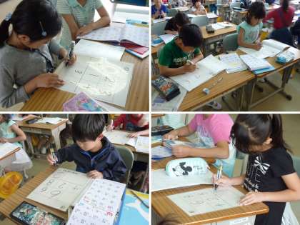 10人の子どもが記入し、黒板に貼りだして答え合わせをしました。