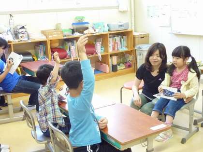 と質問して答えてもらっているふれあい学級。
