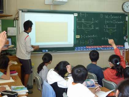 面積図を使って「分数かける分数」の意味を理解している6年生。