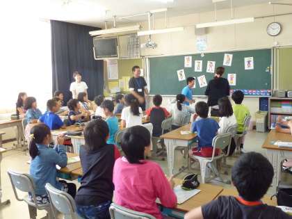 ALTと英語専科の先生が加わり、3人体制で行っている長根小学校の外国語活動。