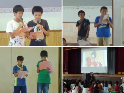 6年生が進行係を務め、七夕の物語の紹介や七夕クイズをしました。