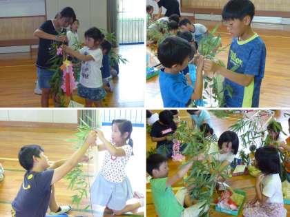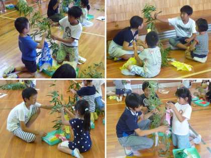 6年生が、笹を一本ずつ1年生のために持ってきてくれました。
