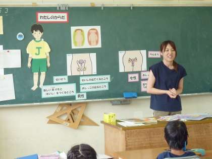 2年生が養護教諭の先生に、からだについての授業をしてもらっています。
