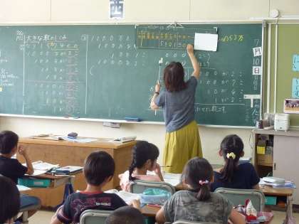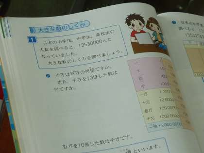 大きな数の読み方を勉強している3年生。