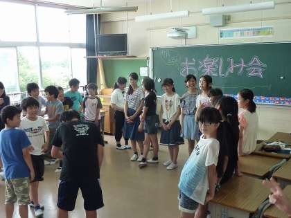 7月と8月に誕生日を迎えるクラスメイトをお祝いして、お楽しみ会を開いている6年生。