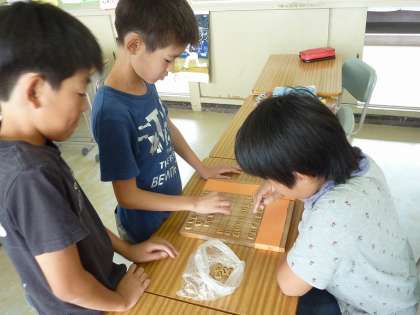 20分放課に教室をのぞくと、5年生が将棋を指していました。