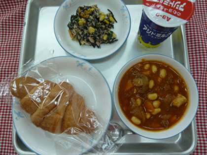 クロワッサン、チキンビーンズ、ひじきサラダ、発酵乳でした。