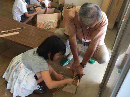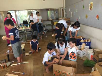 金槌やノコギリを使って、木工を楽しみ長根っ子。