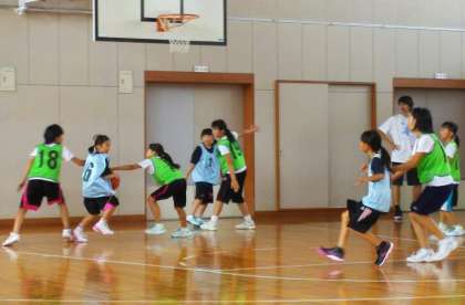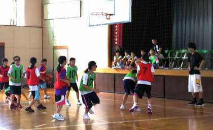 空き時間に、子どもたちが自主的にコートに入り、お互いの動きを確認し合ったり。