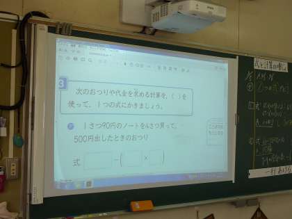 夏休み中に3・4年生の教室にも短焦点プロジェクターの設置が完了し、これで3〜6年生の全9教室で、最先端のICT機器設備が整いました。