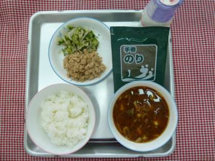 ごはん、豚汁、ツナの甘辛煮、ハリハリ漬け、手巻きのり、牛乳でした。