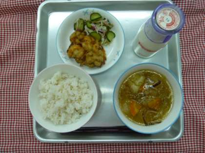 麦ごはん、とうがん汁、大豆とじゃこのかき揚げ、野菜の梅あえ、牛乳でした。