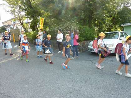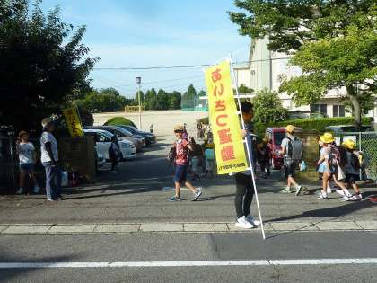 PTA広報部と研修部の皆さんが、一緒にあいさつをしてくださいました。