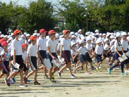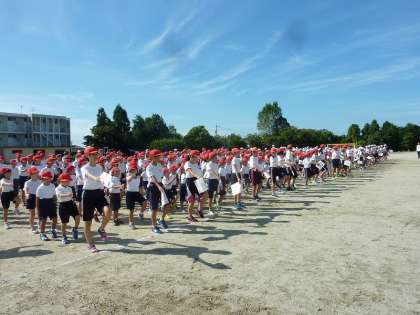 入場行進から、みんなの気持ちをひとつにして、かっこよく歩こうと、集中して入場します。