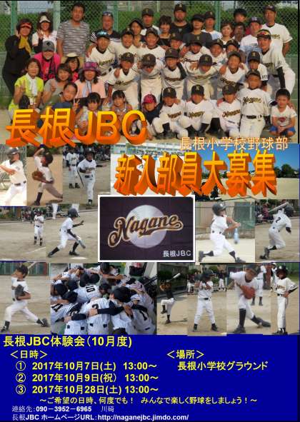 長根JBC体験のご案内です。 野球に興味のある子は、ぜひ!