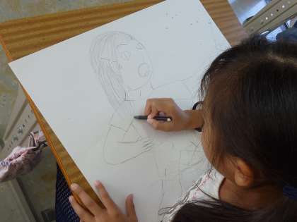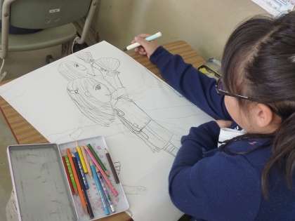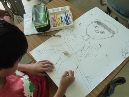 腕の曲がり方、顔の表情など、どのように描いたらよいか先生のアドバイスを聞きました。