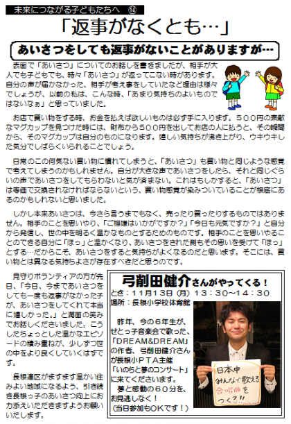瀬戸市内小中学校 長根小学校所在地 後援事業配布チラシ(瀬戸市教育委員会)