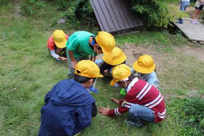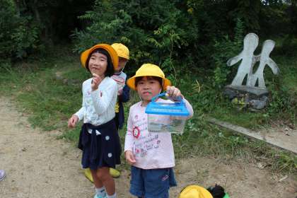 バッタは、勢いよく跳ぶので捕まえるのが大変そうでした。