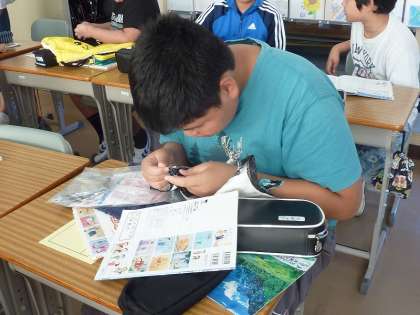 家庭科のナップサック作りもそろそろ終わりそうです。