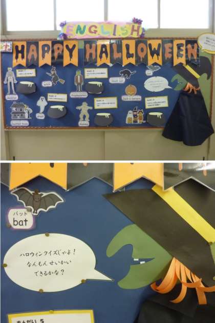今日の授業後、英語専科の先生が職員室前廊下にハロウィンの掲示板を作ってくれました。