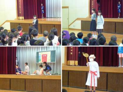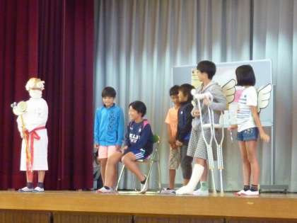 廊下を走るとケガをして危険であるという寸劇は、小道具や衣装もそろえて工夫されていました。