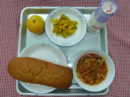 ミルクロールパン、ミネストローネ、かぼちゃサラダ、牛乳、みかんでした。