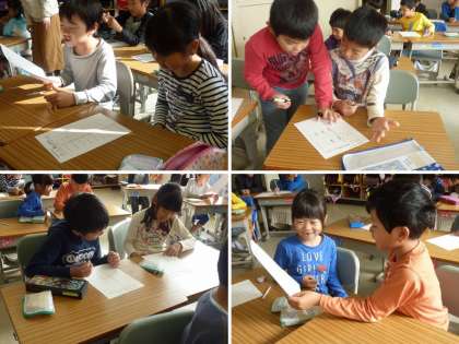 逆からでもバラバラでも言えるように、隣の子と確認をしています。