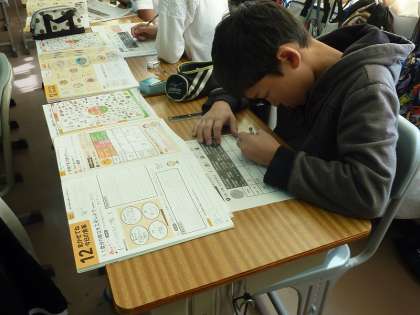 栄養素を考えて、バランスの良い食事について考える6年生。