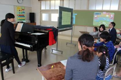 ふれあい教室の授業参観では、音楽の学習で楽しく歌を歌いました。
